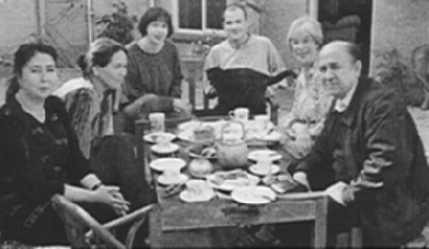 a guest, Margaret Aldiss and YoussefAzemoun at the Aldiss Residence, Oxford